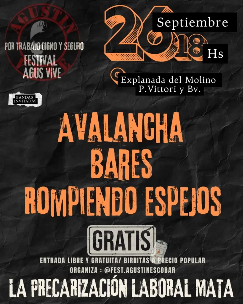 AGUSTÍN VIVE CADA VEZ QUE ALZAMOS LA VOZ, CADA VEZ QUE DECIMOS QUE LA PRECARIZACIÓN LABORAL MATA, CADA VEZ QUE NOS REUNIMOS PARA CONMEMORARLO Y HONRAR SU MEMORIA.