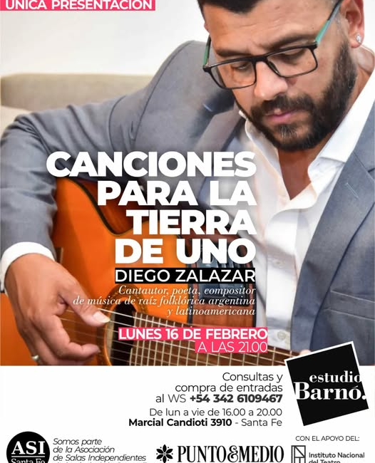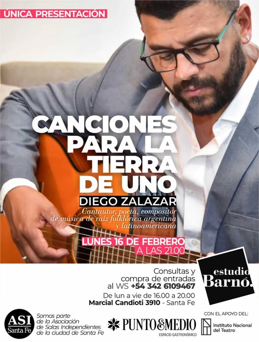 Es un honor recibir por primera vez a este cantautor, poeta, compositor de música de raíz folklórica argentina y latinoamericana en Barnó. Diego es oriundo de la localidad de Empalme Villa Constitución y ganador del Premio de la crítica y la prensa, otorgado por Sadaic, Aadi y Sadem en el Teatro Gran Rex de Capital Federal.