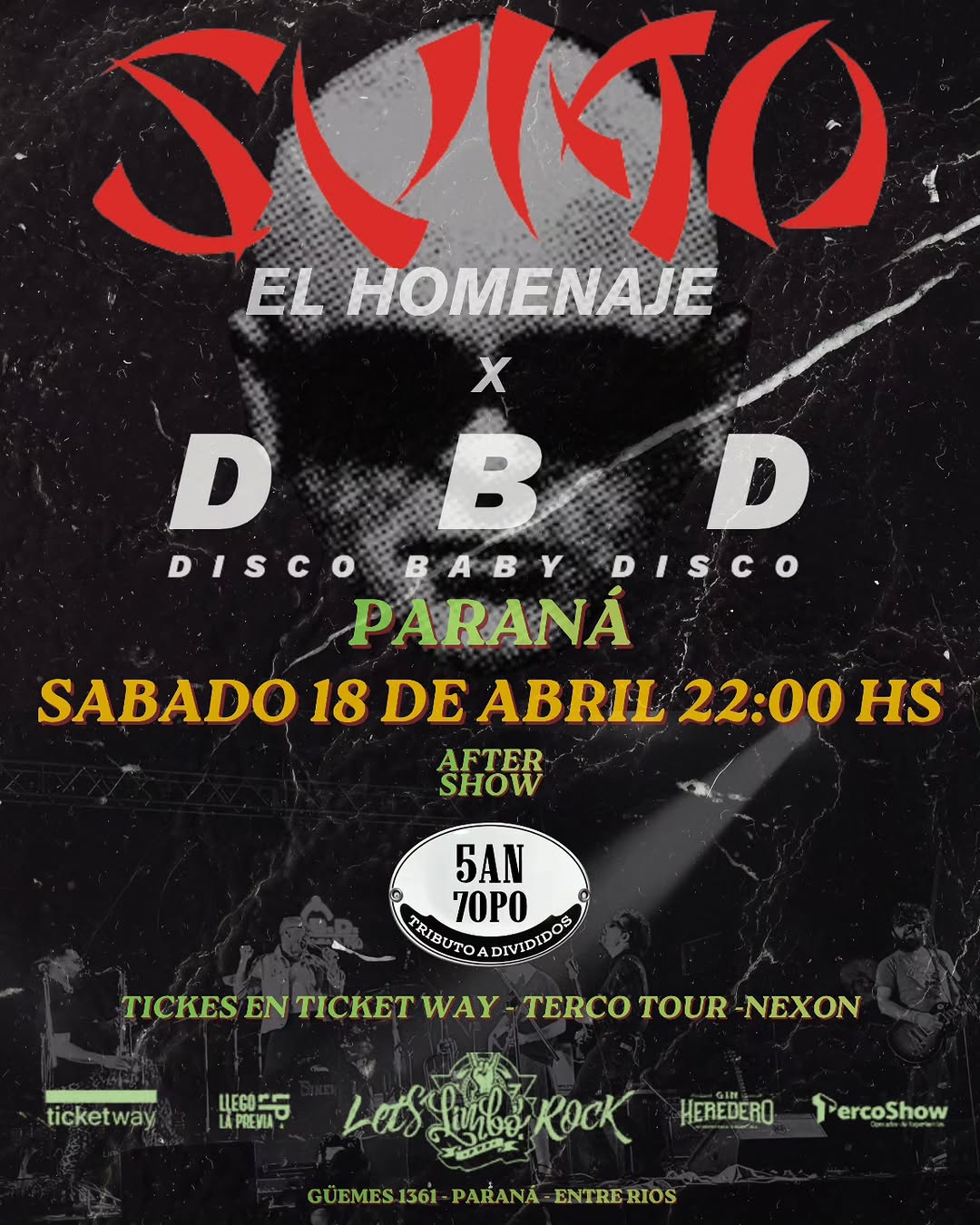 Este sábado 18 de abril. @dbdhomenaje desde córdoba aterriza en @limbo_parana junto a los amigos de @santopo.band y su tremendo homenaje a #divididos