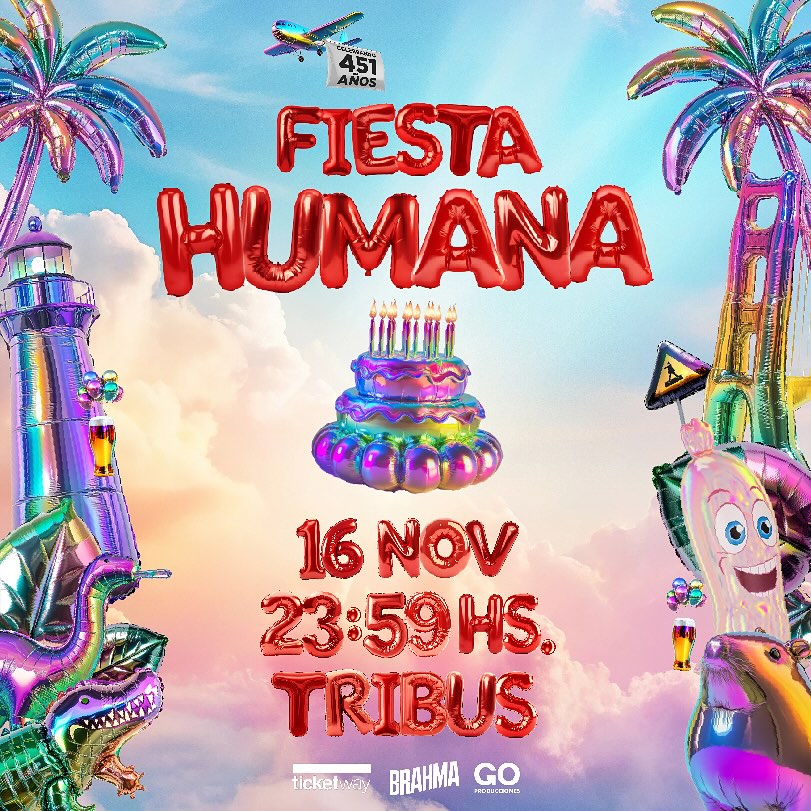 La segunda Fiesta Humana, tendrá lugar en Tribus Club de Arte el sábado 16 de noviembre a las 23.59Hs. Las entradas están a la venta en la boletería de Tribus (miércoles a domingo de 18 a 00Hs) y a través del sistema Ticketway y sus puntos de venta (online y físicos).