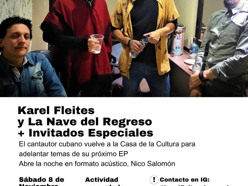 Este sábado 8 de noviembre a las 20.30hs, Karel Fleites y La Nave del Regreso llega a la Casa de la Cultura junto a invitados especiales.