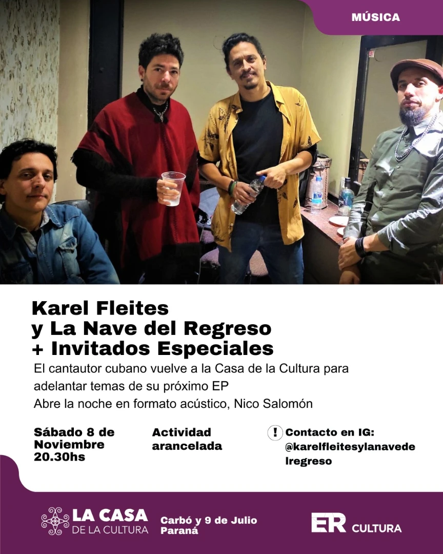 Este sábado 8 de noviembre a las 20.30hs, Karel Fleites y La Nave del Regreso llega a la Casa de la Cultura junto a invitados especiales.