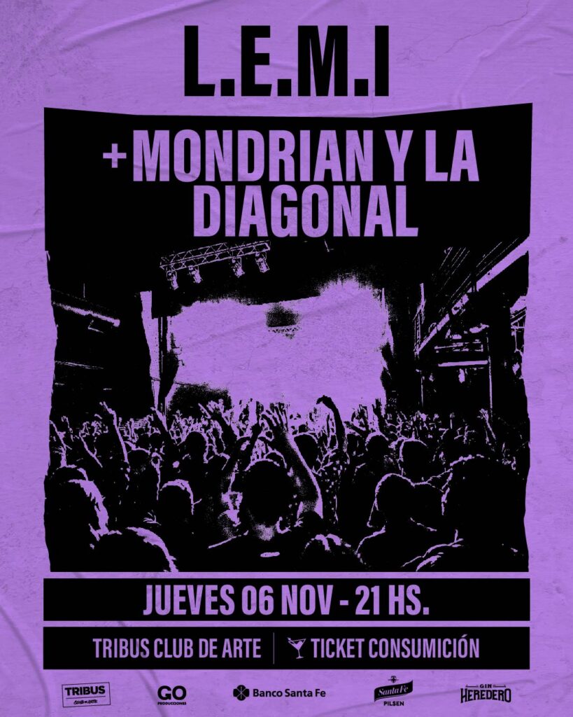 L.E.M.I. y Mondrian y La Diagonal llegan a Tribus con toda la frescura del nuevo rock santafesino y su fusión de géneros. Adquirí tu ticket válido por una consumición en la boletería de Tribus.