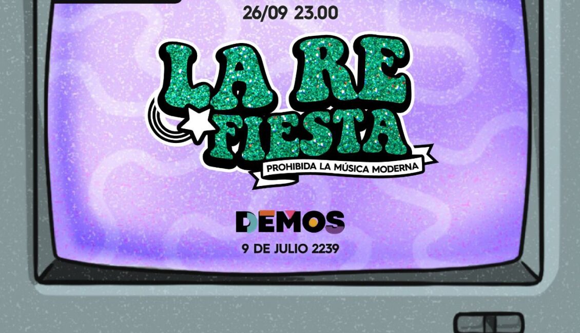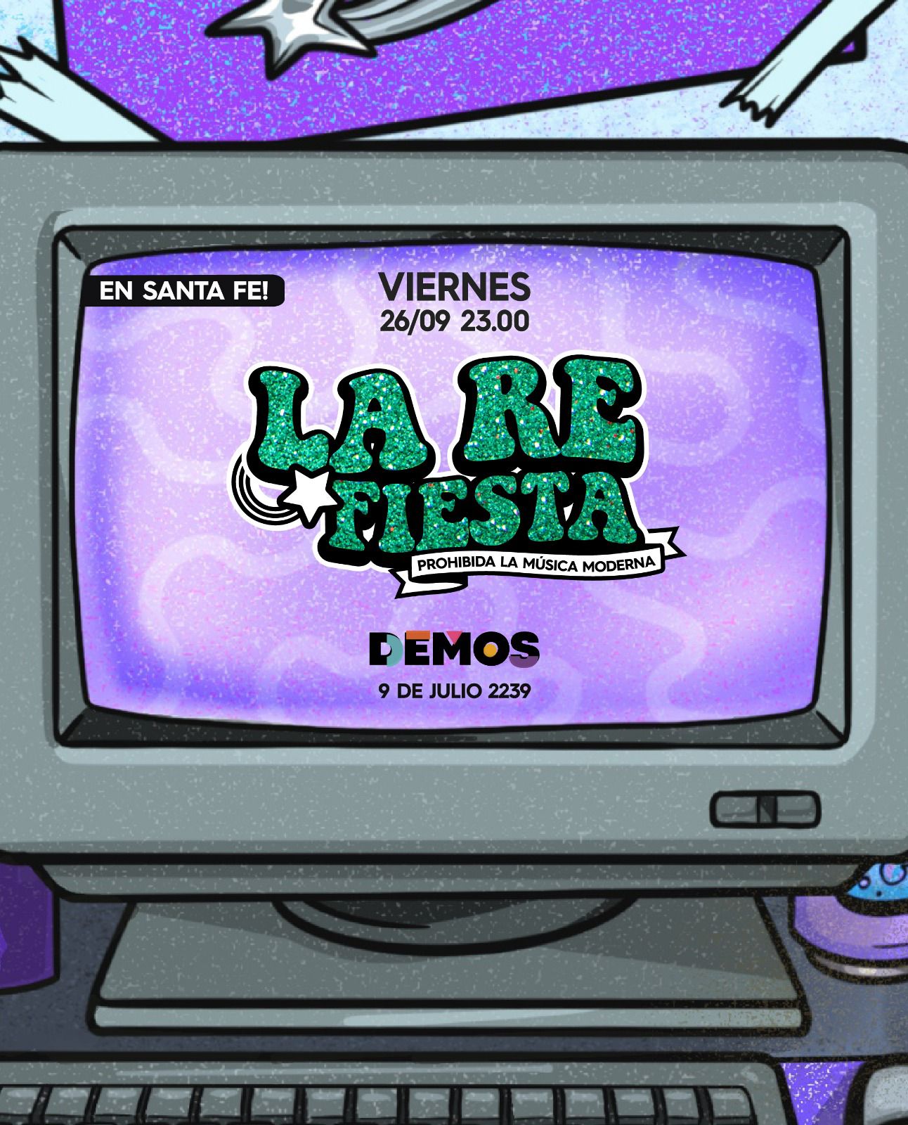 La Re Fiesta vuelve a Santa Fe con todos los hits de los 90’ y 00’. Una nueva edición de La Re Fiesta tendrá lugar el viernes 26 de septiembre a las 23Hs en Demos (9 de Julio 2239). Las entradas están a la venta a través de Ticketway y sus puntos de venta (online y físicos).