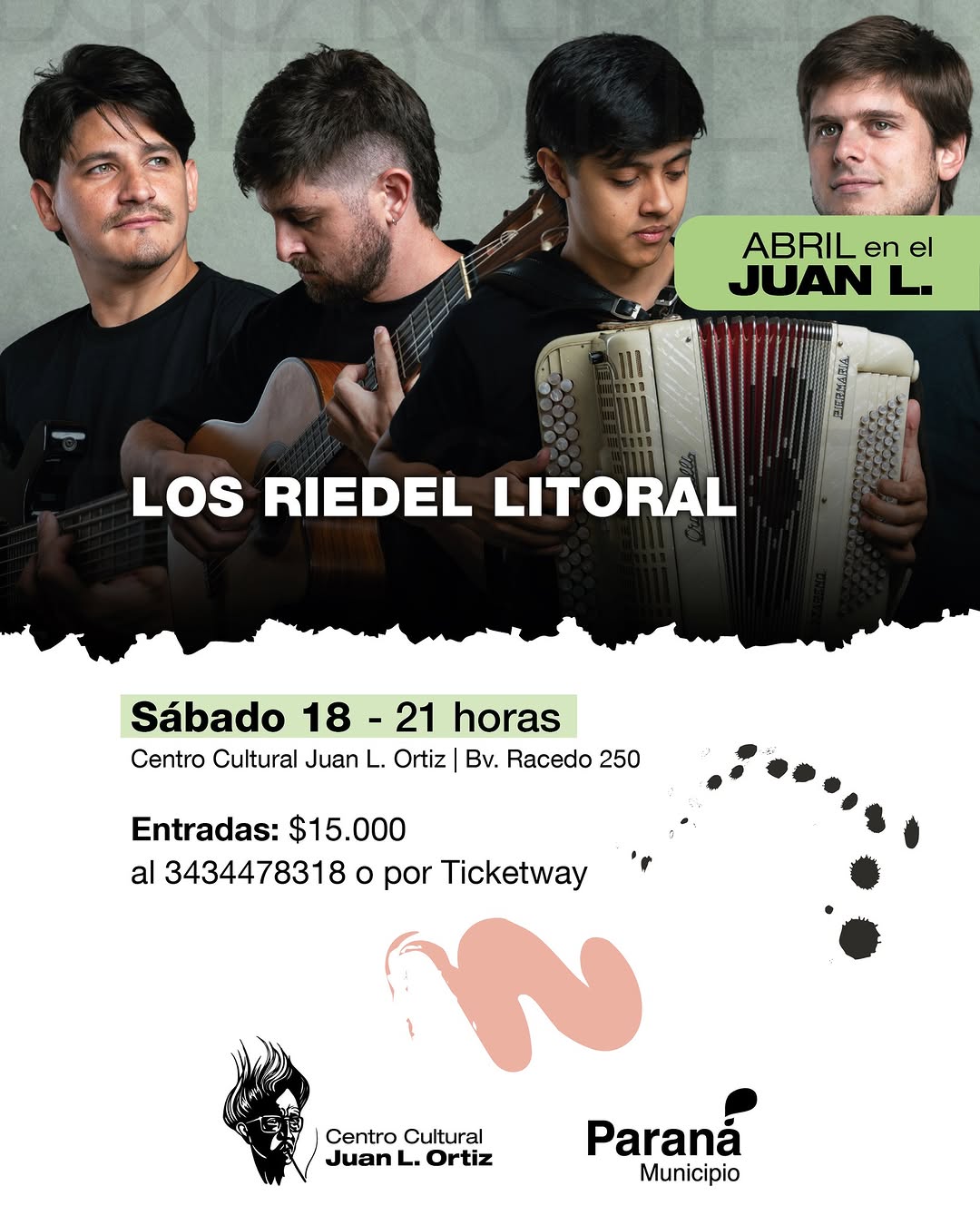 Juan L. Ortiz. Bv. Racedo 250. Entradas $15.000 por ticketway o al 3434478318.