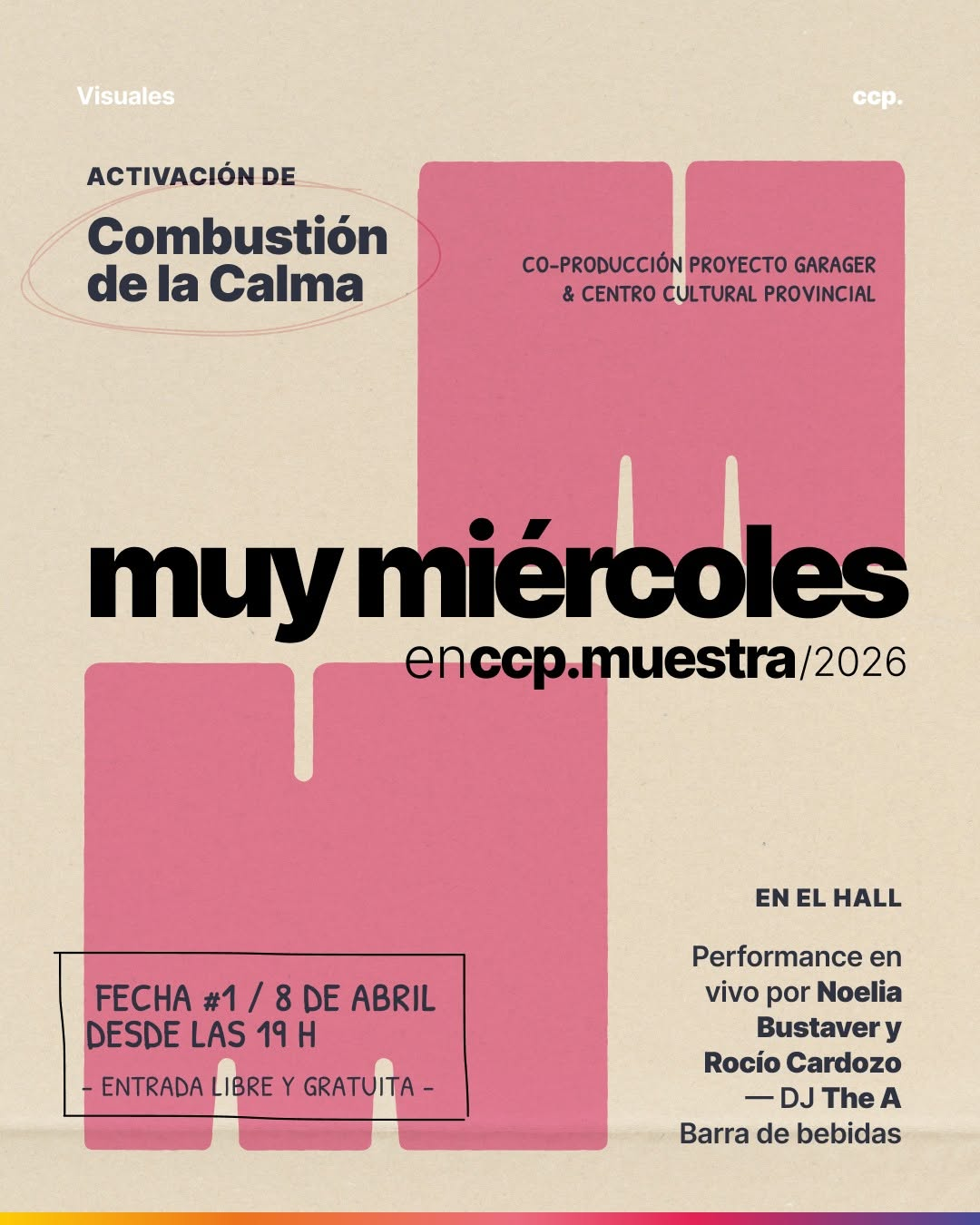 Muy Miércoles: un ciclo de cruce entre artes visuales, música y performance. El próximo 8 de abril el Centro Cultural Provincial inaugura «Muy Miércoles», un ciclo que asume este día como potencia: esta jornada intermedia, sin la expectativa del fin de semana, se presenta como un territorio disponible para la activación artística.