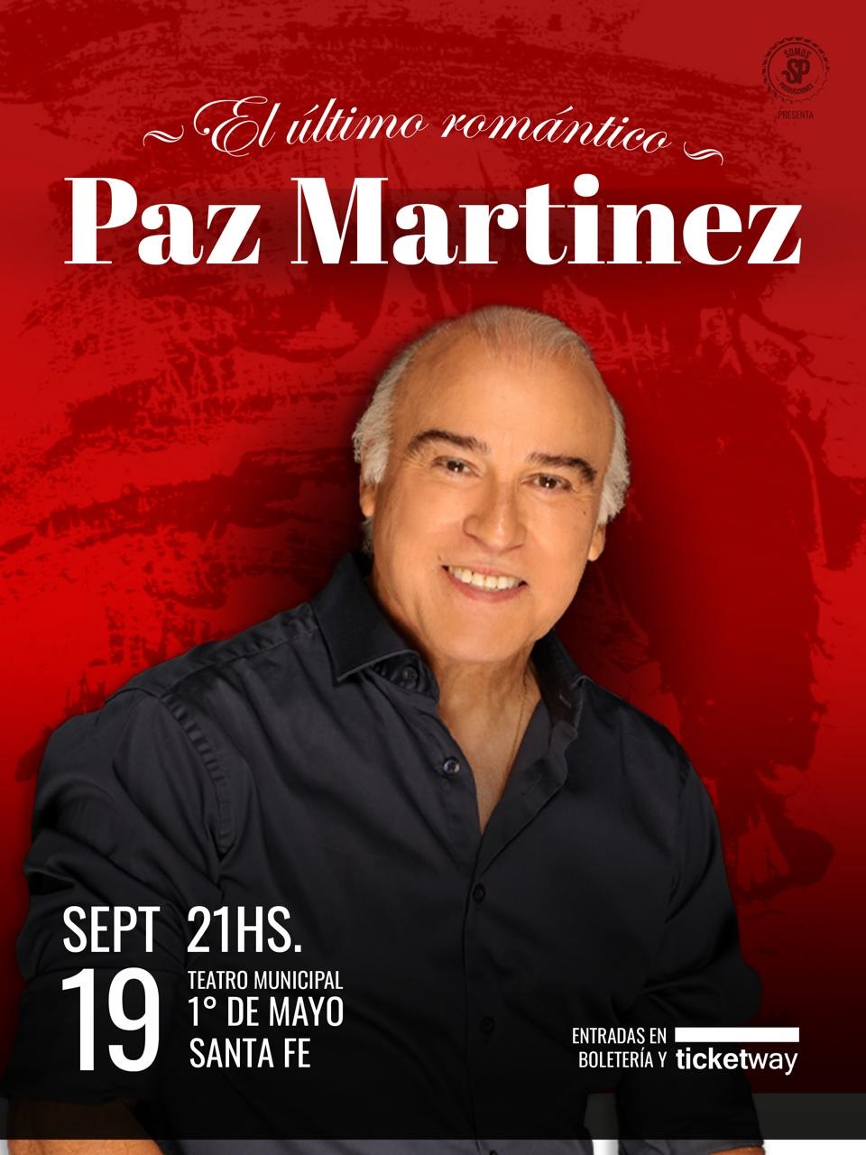 El reconocido músico, cantante y compositor Paz Martínez se presenta en Santa Fe el viernes 19 de septiembre a las 21 h en el Teatro Municipal 1º de Mayo (San Martín 2020).