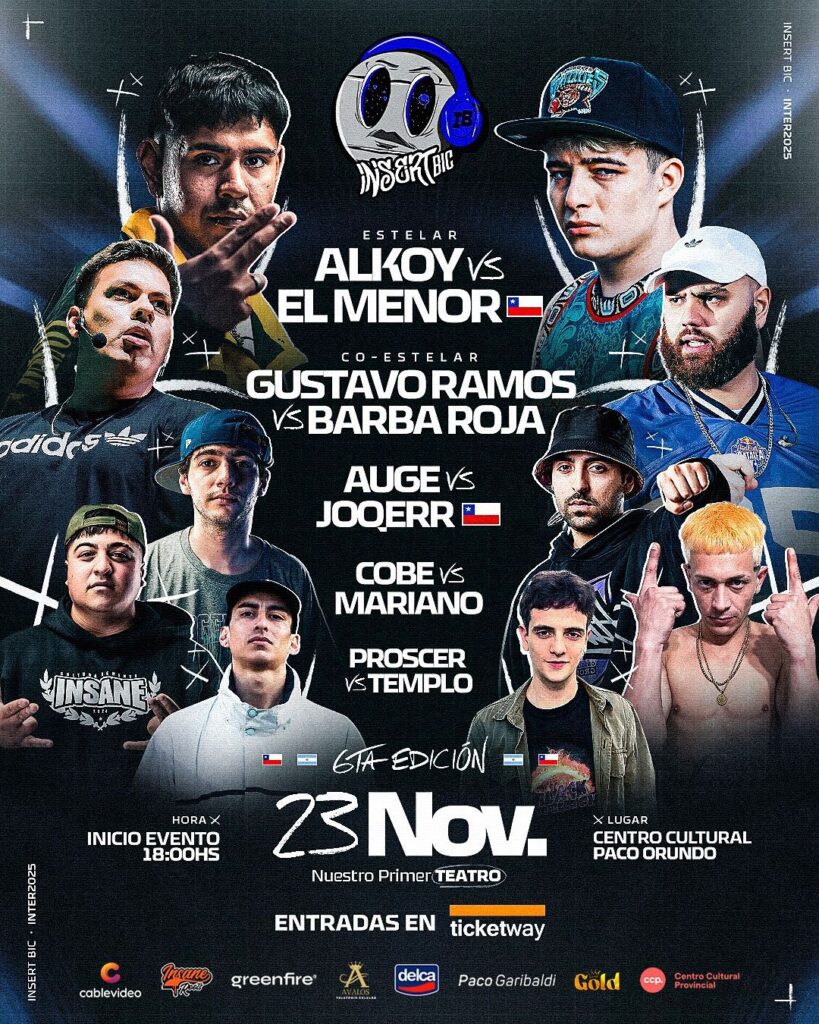 Insert Bic, la liga de batallas escritas referente de Santa Fe, anuncia su 6º Edición con un movimiento inédito en su trayectoria. Por primera vez, el evento se realizará en un teatro, ocupando el escenario del Centro Cultural Provincial Paco Urondo (Junín 2457). La fecha está programada para el domingo 23 de noviembre a las 18:00, con una cartelera internacional que la posiciona como una de las propuestas más importantes del rap regional. Las entradas ya se encuentran a la venta en www.ticketway.com.ar.