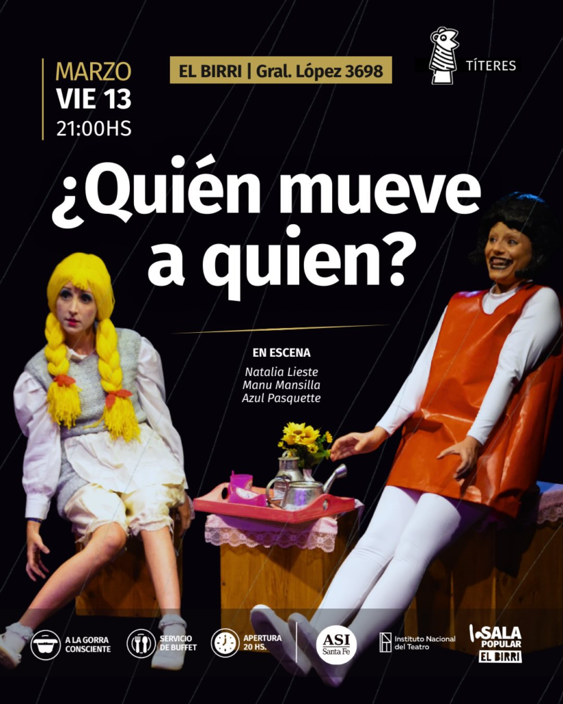 ”¿Quién Mueve A Quien?”/ Grupo Mansilla, Pasquette y Lieste | Viernes 13 De Marzo – 21Hs en Gral.López 3698. Jóvenes y Adultxs. Tres historias breves se enlazan en un mismo pulso: el deseo de ser, de hablar, de elegir. Títeres, objetos y figuras que cobran vida para cuestionar a sus creadores, a sus dueños, a sus moldes.