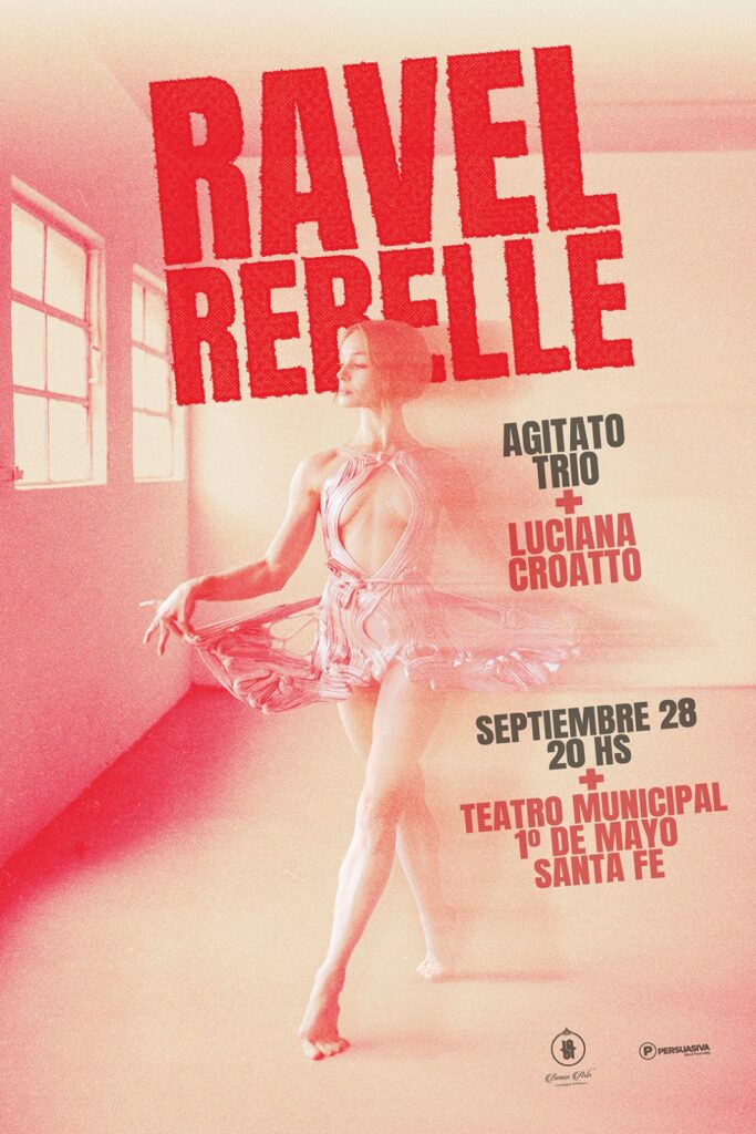 El domingo 28 de Sptiembre a las 20 h, el Teatro Municipal 1° de Mayo será escenario de Ravel Rebelle, un espectáculo único que une el refinamiento de Maurice Ravel y la fuerza revolucionaria de Astor Piazzolla. Con el virtuosismo del Trío Agitato y la danza de la reconocida coreógrafa Luciana Croatto, música y movimiento se fusionan en una experiencia artística de altísima calidad.