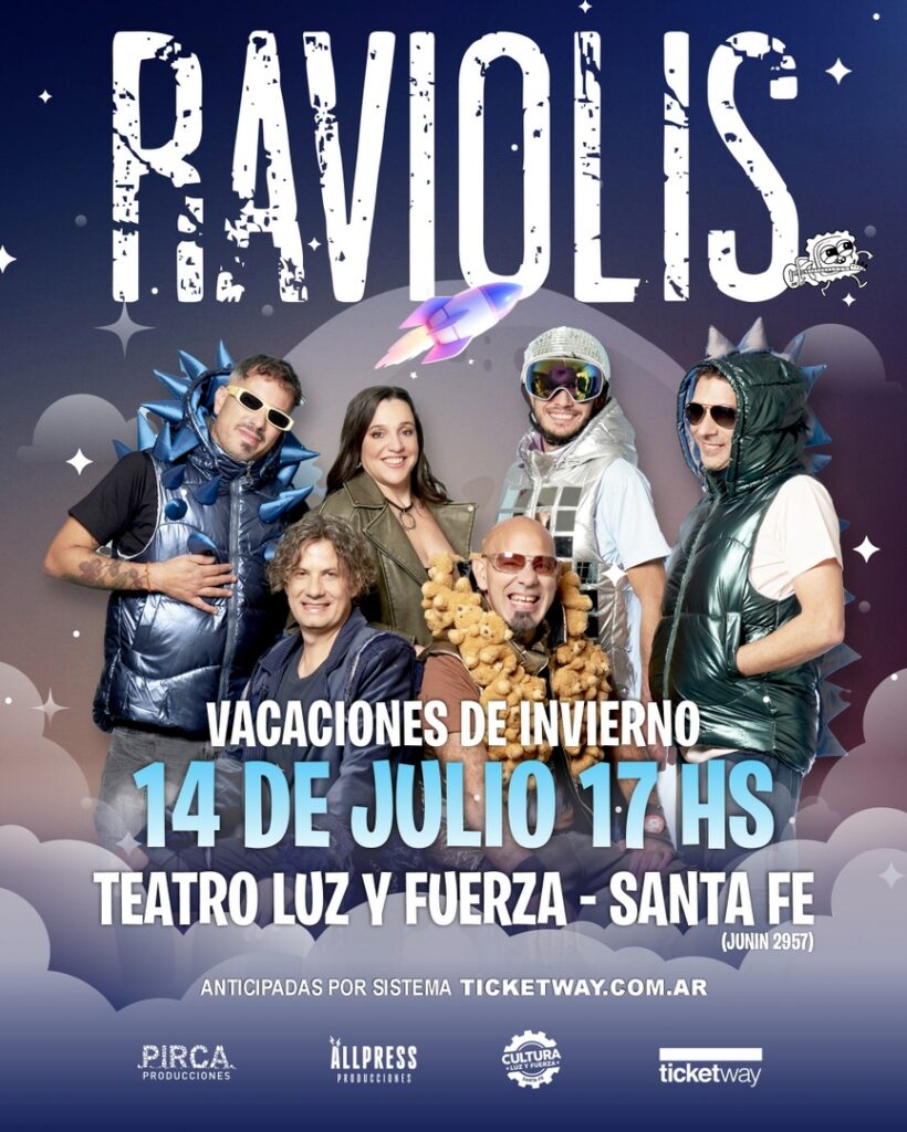 ¡Los Raviolis vuelven a Santa Fe! La banda de rock que conquistó a grandes y chicos con sus letras ingeniosas y energía arrolladora, se presentará en Santa Fe el próximo lunes 14 de julio a las 17.00 horas en el Teatro Luz y Fuerza.