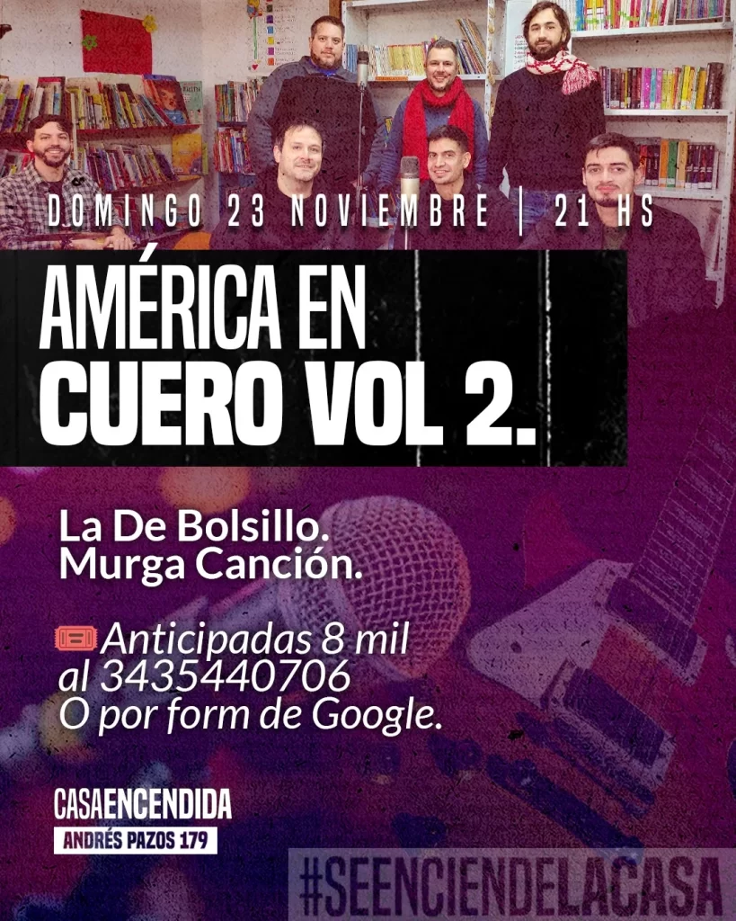 Casa Encendida. Andrés Pazos 179. Anticipadas $8000 al 3435440706.