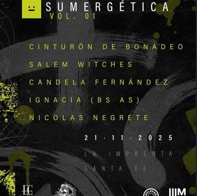Sumergética: No es una fiesta, es un estado!! 21 – 11 – 2025. La Imprenta | Santa Fe. Música en vivo, DJs y performances en modo on. Lineup: Cinturón de Bonadeo, Salem Witches, Candela Fernández, Ignacia, Nicolás Negrete. Entrá en estado. Entradas en Ticketway.