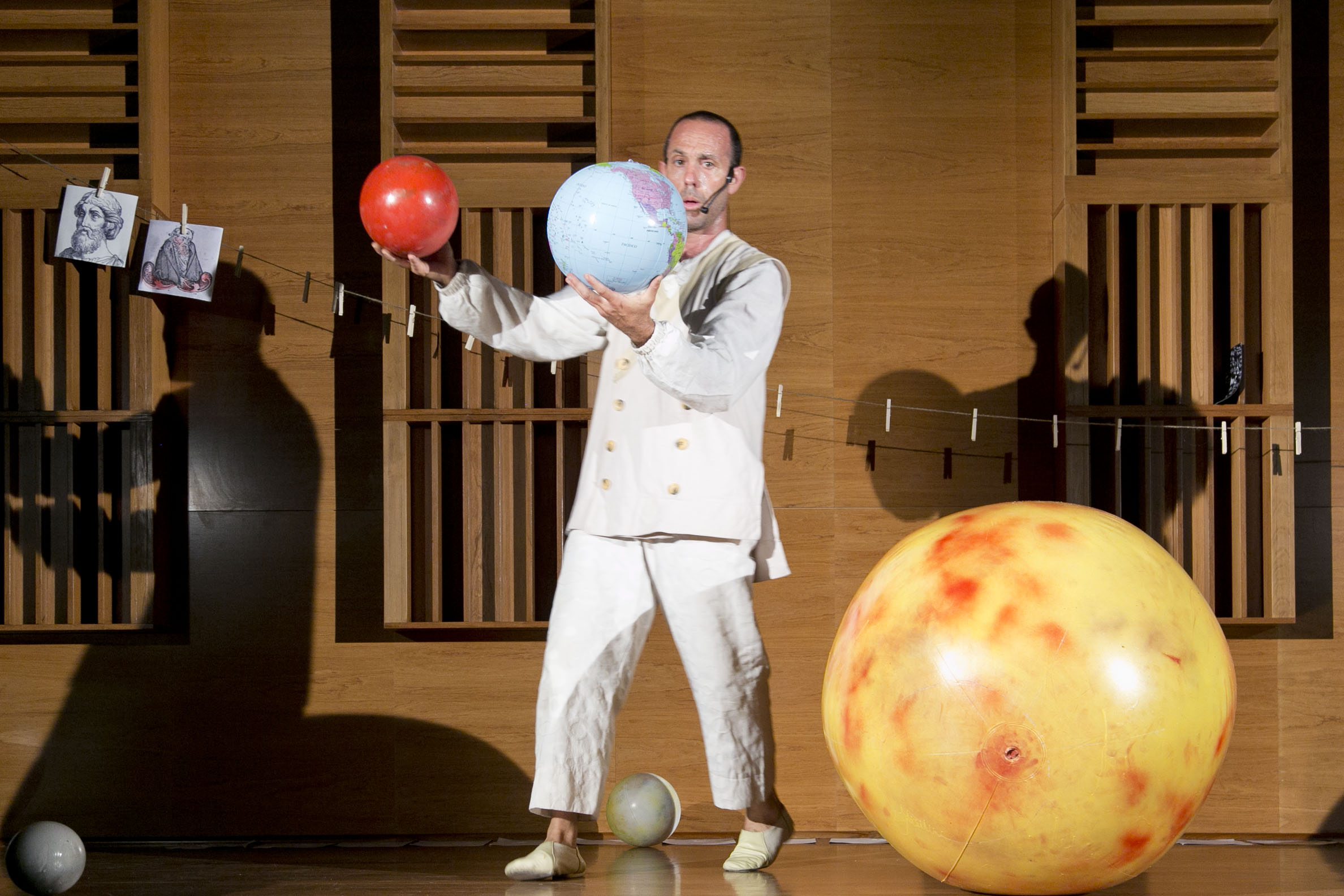 “Kepler, Galileo, Einstein, aparecen en escena hablando de sus descubrimientos y teorías entre planetas que cuelgan del techo. La obra Los Sonámbulos propone una historia de la ciencia que ofrece multiplicidad de preguntas e interrogantes más que afirmaciones cristalizadas”.