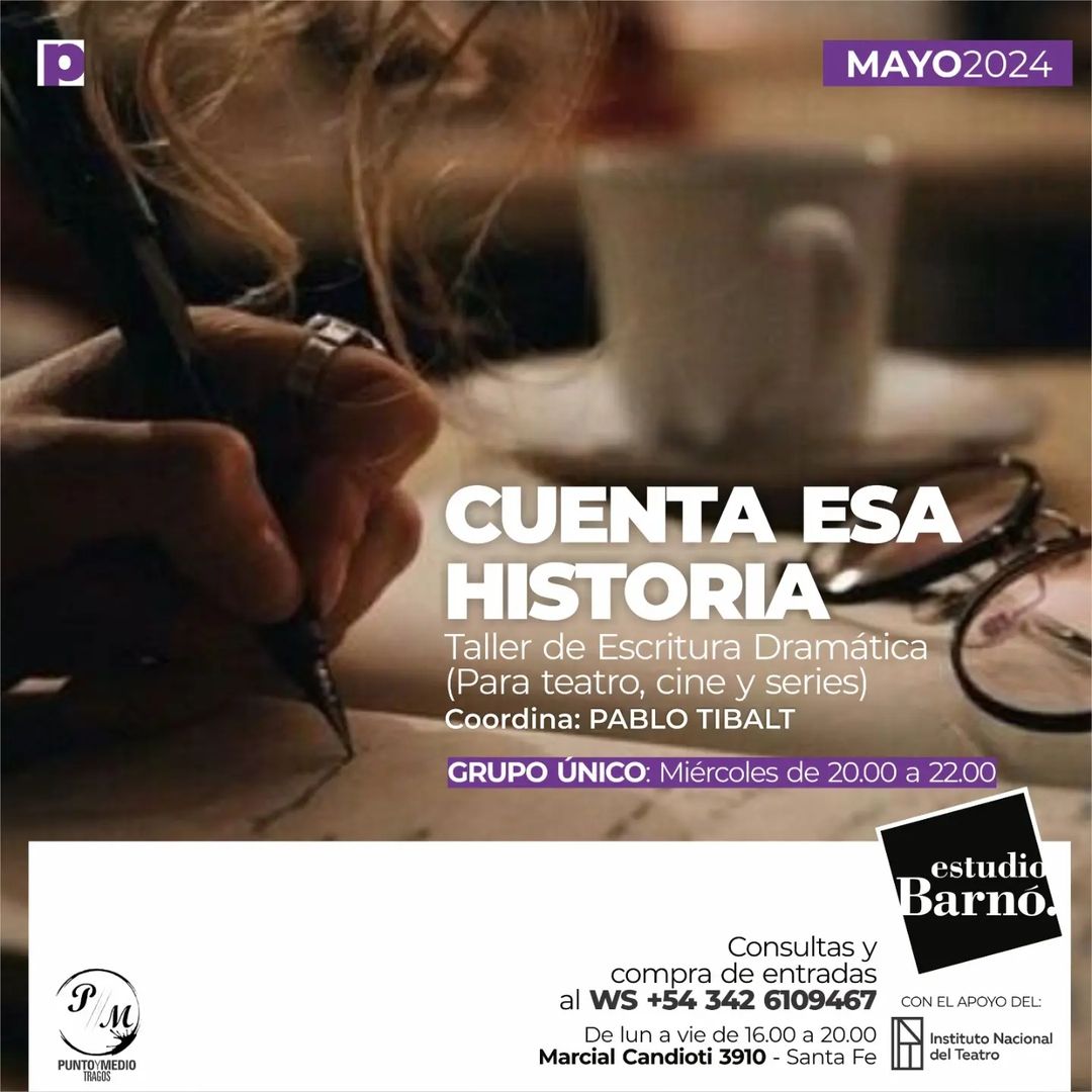 Es un espacio para aprender, experimentar y compartir como es el arte de contar historias..En este taller escribimos, leemos teatro, vemos películas y capítulos de series, nos “metemos” en el imaginario de autores destacados con el objetivo de encontrar en esos materiales los mecanismos de la escritura dramática.Para hacer el taller no necesitás tener ningún conocimiento previo ya que está destinado a cualquier persona que escriba o que quiera empezar a hacerlo, así como también a estudiantes de cine, teatro, literatura, producción, comunicación y a profesionales de esas disciplinas que deseen producir sus propios textos para contar historias.